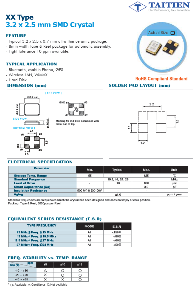 | XXBBBCNANF-26.000000 | Taitien | XX | 26MHz | ±10ppm | ±10ppm | 9pF |