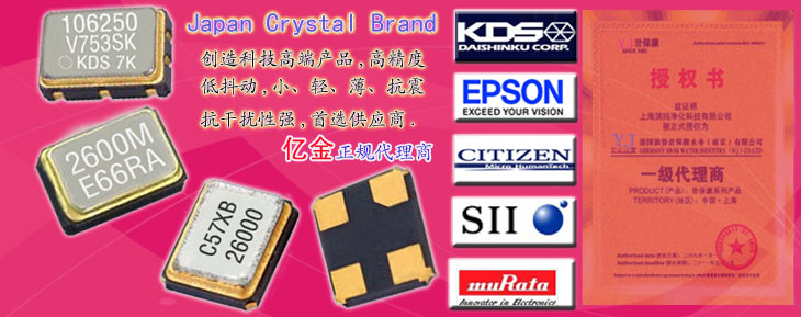 億金電子代理進口晶振品牌,京瓷晶振,CTS晶振,NDK晶振,KDS石英晶振,TXC晶振,鴻星晶振等.所代理進口晶振品牌常用型號頻點均有現(xiàn)貨,所代理有源晶振,石英晶體振蕩器,具有不同的電源電壓選擇以及不同的輸出類型.歡迎新老客戶咨詢億金電子,可免費提供晶振樣品以及專業(yè)的技術指導服務.