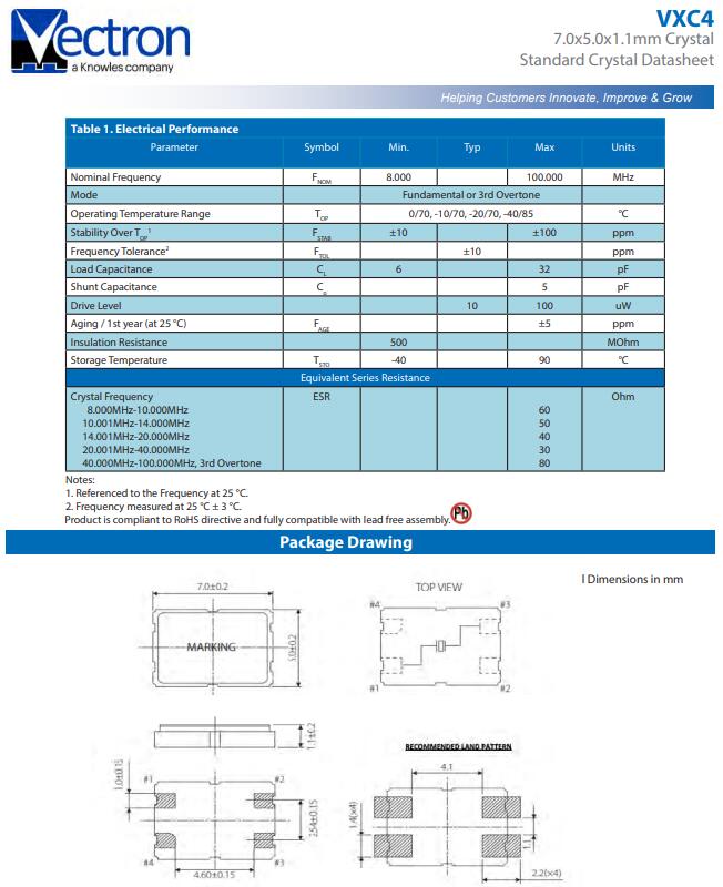 耐焊性:Vectron Crystal,VXC4晶振,7050四腳晶振