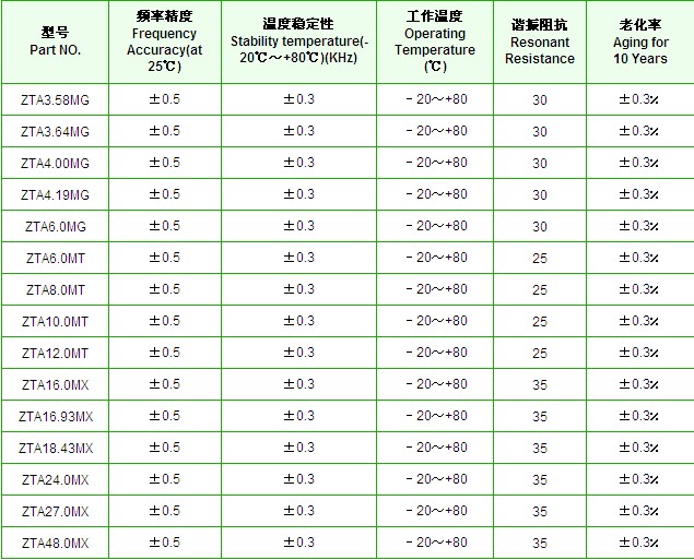 陶瓷晶振,陶瓷諧振器,ZTA兩腳陶瓷晶振,諧振器