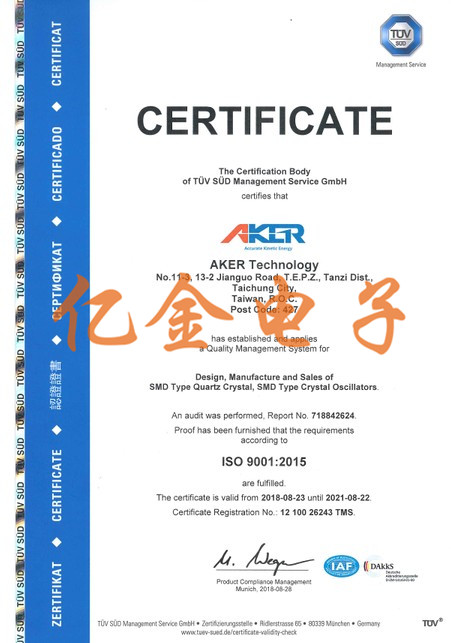 AKER Crystal安碁科技為石英晶振,貼片晶振,晶體振蕩器專業(yè)制造商,一直致力于提供給顧客高品質(zhì)的產(chǎn)品.成立于1990年,是一家全球性高科技公司,以技術(shù)為導(dǎo)向,為各領(lǐng)域產(chǎn)品提供設(shè)計(jì)和制造各種頻率控制解決方案.安基晶振公司為了能不斷地提供顧客更優(yōu)質(zhì)的產(chǎn)品,借著ISO9001及TS16949等品質(zhì)管理系統(tǒng)的導(dǎo)入,以便能提升公司內(nèi)全體人員之品質(zhì)觀念,進(jìn)而達(dá)到品質(zhì)保證的目的.