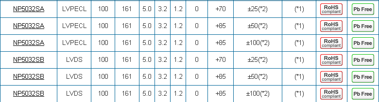 更多>>晶體NP5032SA,NP5032SB有源晶振,六腳SMD振蕩器