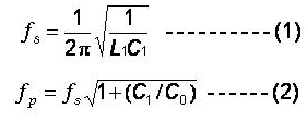 在評估共振時的等效線路時, 串聯(lián)諧振頻率及并聯(lián)諧振頻率, fs and fp , 是最重要的二個頻率參數(shù). 對于串聯(lián)諧振頻率及并聯(lián)諧振頻率( fs and fp )二者的關(guān)系, 我們可以用下列公式來表達: .png)
