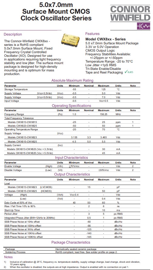 | CWX825-50.0M | ConnorWinfield | CWX825 | 50MHz | -20°C ~ 70°C | 4-SMD, No Lead |