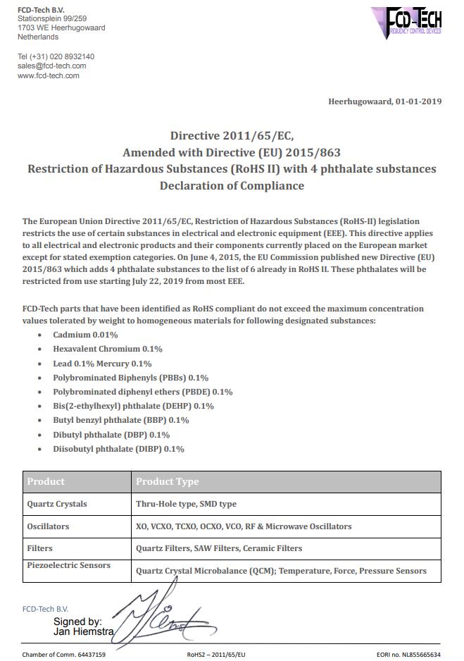 因?yàn)?/span>FCD-Tech不直接從冶煉廠或精煉廠采購3TG,并且有一個(gè)多層次的、復(fù)雜的和地理上分散的供應(yīng)鏈,與我們的供應(yīng)商合作是我們努力遵守法律的一個(gè)基本要素。FCD-Tech要求其供應(yīng)商遵守沖突礦物規(guī)則,并支持FCD-Tech履行其在該規(guī)則下的義務(wù),包括向FCD-Tech提供有關(guān)供應(yīng)給FCD-Tech業(yè)務(wù)部門的3TG組件的原產(chǎn)國(guó)的信息。當(dāng)發(fā)現(xiàn)不合規(guī)情況時(shí),我們將嘗試與相關(guān)供應(yīng)商合作,以糾正這種情況。如果供應(yīng)商仍然不合規(guī),我們將評(píng)估我們的選擇,包括但不限于重新評(píng)估供應(yīng)商關(guān)系。FCD-Tech晶振在此聲明所提供的產(chǎn)品與金屬無沖突。