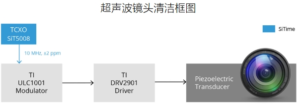 2、溫補晶體振蕩器 (TCXO) 在 -40°C 至 +85°C 范圍內穩(wěn)定性低至 ±0.1 ppm (SiT5356)。對于超聲波鏡頭清潔,SiTime 推薦使用 SiT5008(在 -40°C 至 +85°C 范圍內為 ±2 ppm)。